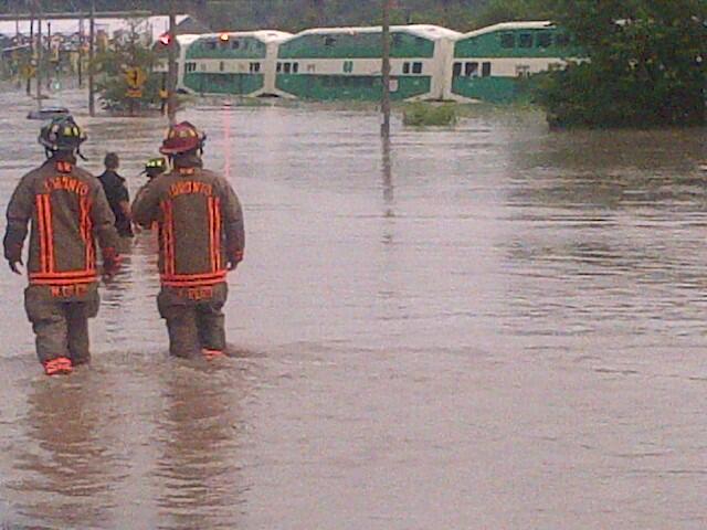 Накануне в канадском Торонто начались сильнейшие ливневые дожди. Сейчас улицы города полностью затоплены, местами уровень воды достигает 2 м. Движение транспорта, в том числе и метро, парализовано.