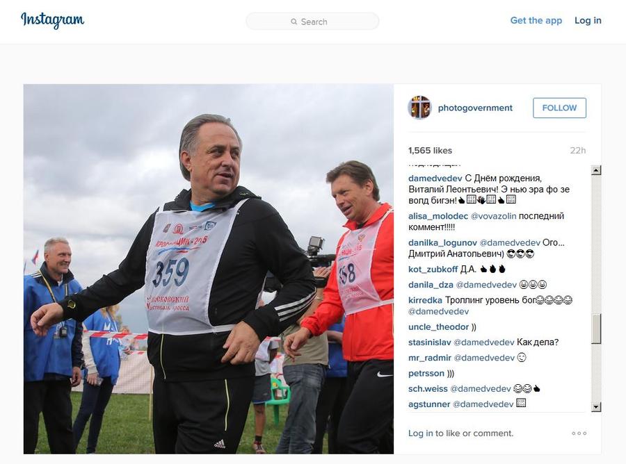Дмитрий Медведев поздравил Виталия Мутко с днём рождения в Instagram