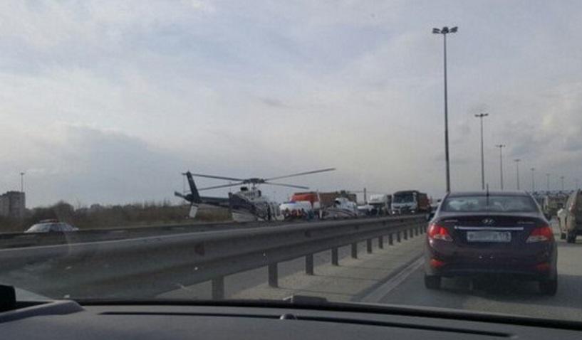 «Для эвакуации зажатого в легковом автомобиле водителя был вызван вертолёт. Однако после его приземления на проезжую часть в вертолёт въехал самосвал. Вертолёт получил незначительные повреждения. Был вызван второй спасательный вертолёт. После осмотра специалистами оба вертолёта покинули место ДТП своим ходом», — цитирует РИА Новости правоохранителей.