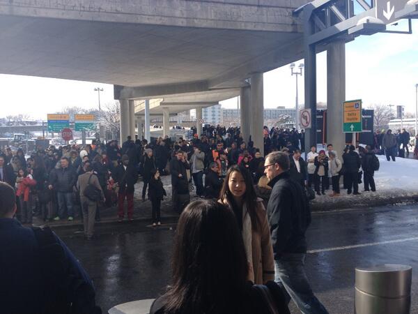 Служба безопасности нью-йоркского аэропорта Ла Гуардиа эвакуирует людей, находящихся в терминале «С». По свидетельствам очевидцев, на место происшествия прибыло 20 полицейских автомобилей. Причиной тревоги стал подозрительный багаж, от которого исходят струйки дыма.
