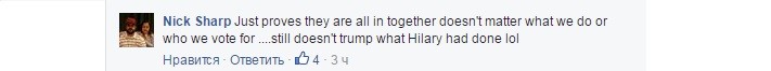 «Это говорит о том, что они действуют сообща и не важно, что мы делаем или за кого голосуем», — добавил Nick Sharp.