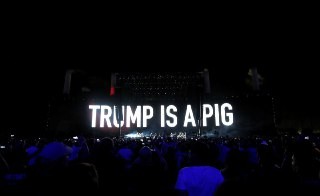 Когда Уотерс исполнял песню Pink Floyd «Pigs (Three Different Ones)», в воздух запустили большой воздушный шар в форме свиньи, на котором было изображено лицо Трампа и череп с подписью, гласящей: «Невежда, лгун, расист, сексист».