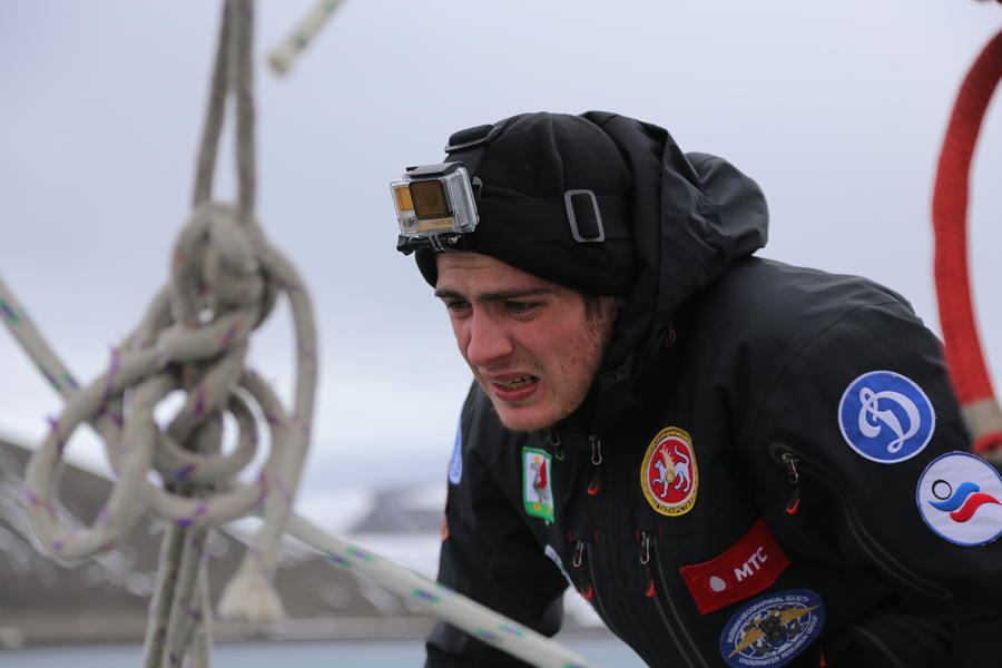 «Для нас, непривыкших к штормам, было тяжело. На нашем пути встречались глыбы льда, которые в последний момент удавалось обойти. Чтобы наша яхта с глыбами не сталкивалась, нам приходилось постоянно нести ледовые вахты. Первые два дня мы вообще практически не вставали, даже не кушали ничего», — вспоминает дайвер.