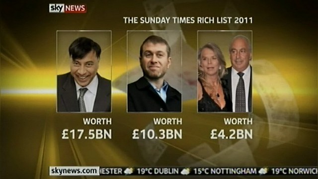В то время как многие британцы из-за кризиса в экономике едва сводят концы с концами, кажется, что супербогачи становятся еще богаче. В этом году список самых богатых людей по версии Sunday Times претерпел несколько изменений по сравнению с прошлым годом, однако его по-прежнему возглавляет сталелитейный магнат Лакшми Миттал. Его состояние, по оценками, достигает 17,5 миллиардов фунтов стерлингов.