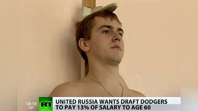 Российские депутаты предлагают суровый способ убедить молодых людей не уклоняться от службы в армии. Согласно новому законопроекту, предложенному на рассмотрение в Госдуму, уклонисты без уважительной причины должны будут выплачивать 13 процентов от своей зарплаты до достижения 60 лет.