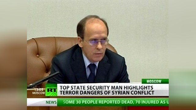 ТОМ БАРТОН, корреспондент RT: Глава ФСБ выразил опасения, связанные не столько с гуманитарным кризисом или угрозой межконфессионального конфликта в Сирии, сколько с международным терроризмом и в частности «Аль-Каидой». Он заявил, что неспокойная обстановка на Ближнем Востоке стала питательной средой для терроризма, а свержение лидеров государств облегчило деятельность террористических группировок, особенно, таких как «Аль-Каида».