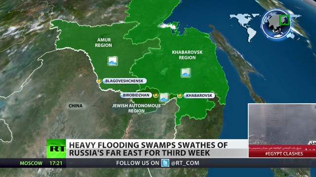 Разрушительное наводнение распространяется по Дальнему Востоку России. Из зон ЧП уже эвакуировано около 14 000 жителей. С подробностями корреспондент RT Линдси Франс.