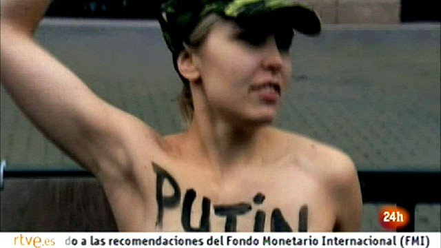 В Брюсселе две активистки Femen провели акцию протеста против российского президента Владимира Путина, которого они назвали «убийцей демократии», передает Canal 24 Horas TV. Как отмечает испанский телеканал, таким образом они осудили вмешательство России во внутренние дела Украины.