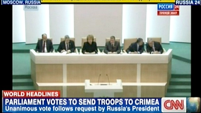 Верхняя палата российского парламента единогласно проголосовала за то, чтобы направить войска в Крым, на Украину. Инициатором выступил президент Владимир Путин: по его словам, «жизни граждан Российской Федерации под угрозой».