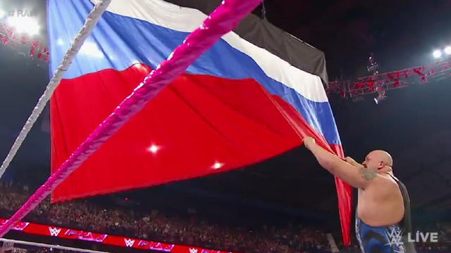 USA Today сообщает, что в тот вечер у Русева не было боев, но он все равно появился перед зрителями, чтобы бросить вызов другому рестлеру под псевдонимом The Big Show. Когда тот вышел на ринг, Русев от него сбежал. После чего его оппонент сорвал российский флаг и бросил его на пол.