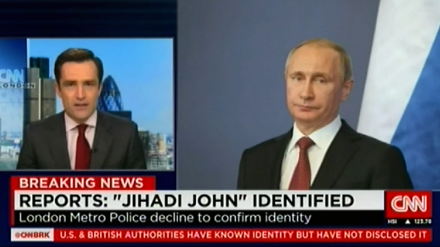Часть сюжета, который транслировался CNN, опубликовал один из пользователей YouTube. «Я думаю, есть опасения насчет судьбы заложников, которые сейчас находятся в опасности, и по поводу привлечения к ответственности этого человека, Джихадиста Джона», — произносит ведущий Макс Фостер, в то время как на экране появляется фотография Владимира Путина.