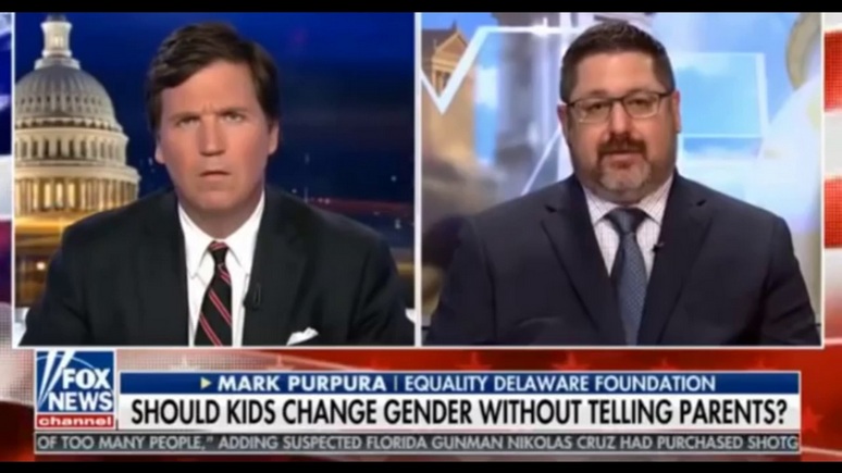МАРК ПУРПУРА: Такер, это правило не подталкивает детей ни к какому решению. Оно просто позволяет им определять собственный гендер и расу для школьного учёта. Согласно этому правилу, школа вправе заранее обратиться к родителям за разрешением. В таком случае, прежде чем обратиться к родителям, школа должна оценить, что будет лучше для здоровья, безопасности и благополучия ребёнка.