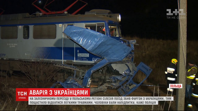 В Польше поезд сбил фургон с украинцами. Двое наших граждан отделались лёгкими травмами. На открытом железнодорожном переезде в регионе Силезия машина не успела проскочить пути. Поезд снёс багажник. Украинцев, которые, по данным полиции, были в состоянии опьянения, отправили в больницу с незначительными ранениями. Из 300 пассажиров поезда никто не пострадал.