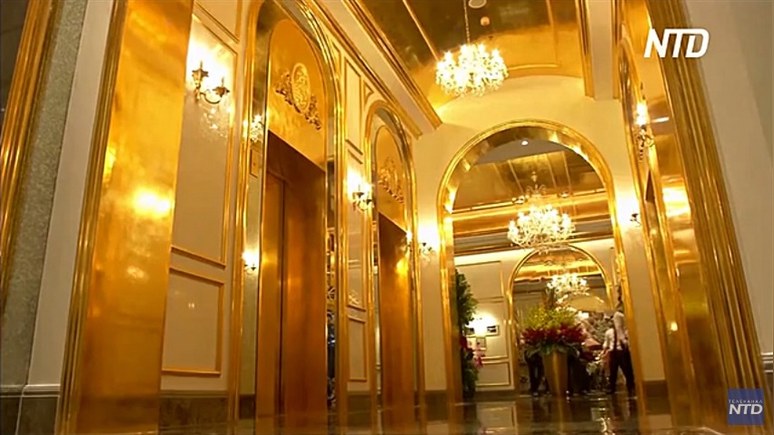 ПОСЕТИТЕЛЬ: Когда я впервые вошёл в гостиничный номер, покрытый золотом, когда увидел ванную комнату, у меня возникли какие-то новые ощущения! В других роскошных отелях используют мраморную плитку — а здесь всё позолочено, вплоть до умывальника. Я чувствую, что это сделано совершенно на другом уровне.