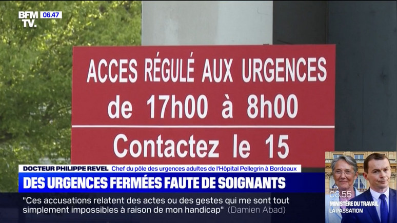 ФИЛИП РЁВЕЛЬ, глава отделения скорой помощи для взрослых в больнице Пеллегрен в Бордо: Сейчас много больных но, главное, недостаточно врачей. И поэтому мы вынуждены ограничить приём пациентов и тратить оставшиеся у нас ресурсы на пациентов, которым это действительно необходимо.