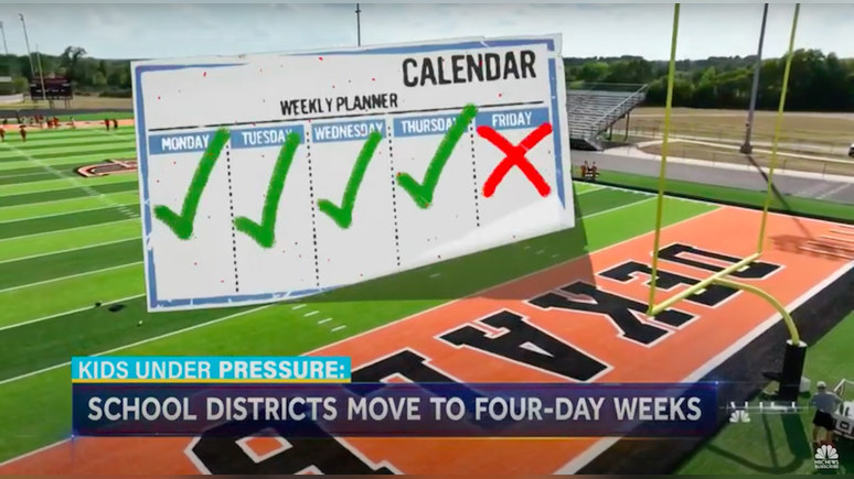 Проведённое недавно исследование показало, что те школьники, которые учатся четыре дня в неделю, ежегодно проводят в школе в среднем меньше на 58 часов — часов, которые, по словам экспертов, накапливаются и с течением времени могут иметь пагубное влияние.