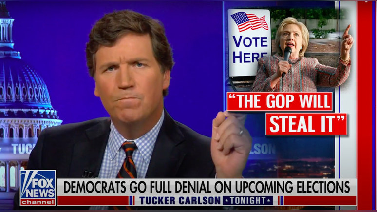 В Демократической партии США обвиняют бывшего президента Дональда Трампа в том, что он собирается украсть победу на промежуточных, а затем и на президентских выборах. Как отмечает ведущий Fox News Такер Карлсон, там считают, что сделает это Трамп при помощи российского президента Владимира Путина. Проигравшая выборы в 2016м году Хиллари Клинтон не устаёт об этом говорить на всех телешоу и выступлениях.