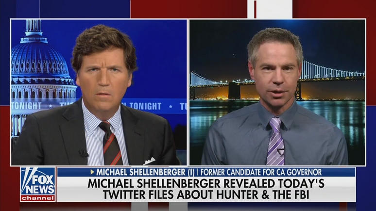 МАЙКЛ ШЕЛЛЕНБЕРГЕР, журналист: Рад пообщаться с вами, Такер. Мы потратили пару недель, изучая огромный массив внутренней переписки сотрудников Twitter по электронной почте и их личные сообщения в Slack. И вырисовывается такая картина, что один из действующих агентов ФБР, стороннее для Twitter лицо, и присоединившиеся к Twitter бывшие сотрудники ФБР…