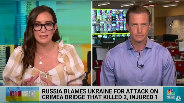 МЭТТ БРЭДЛИ, корреспондент NBC News: Это произошло не так давно, поэтому информация постоянно поступает. В дополнением к тому, что вы уже сказали, Россия сообщает, что повреждения, вероятно, стали результатом атаки беспилотных аппаратов, которые врезались в мост этой ночью. На этих кадрах вы можете видеть, как на месте работают следователи.