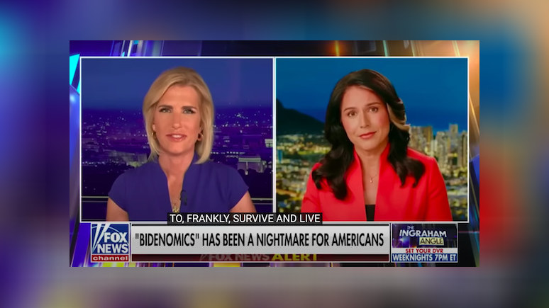 Со мной на связь выходит бывший кандидат в президенты от Демократической партии и внештатный обозреватель Fox News Тулси Габбард. Тулси, в средствах массовой информации произошёл заметный сдвиг в сторону того, чтобы не избегать темы экономики, а пытаться представить экономику как нечто совсем иное, чем она есть на самом деле в жизни большинства американцев.
