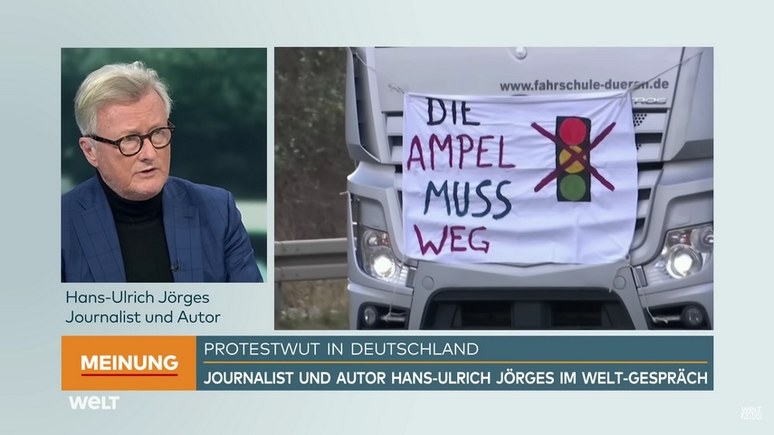 И я прочитал сегодня, кажется, это был функционер Баварского объединения крестьян, который сказал, что если не будет уступок, мы начнём бойкотировать супермаркеты — и тогда полки опустеют. Если это произойдёт, то мы, так сказать, находимся в начале социального восстания. Тогда уже и другие люди этого (сокращения субсидий на дизель. — ИноТВ) не примут. Так что «светофору»* можно только посоветовать не оставаться упёртыми, а отозвать свои планы и найти другие способы получить деньги.