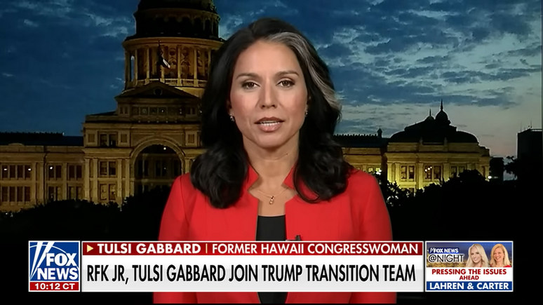 ВЕДУЩИЙ: Обсудим этот вопрос с Тулси Габбард, которая в прошлом баллотировалась в президенты от Демократической партии, а сейчас поддерживает Дональда Трампа. Тулси, рады видеть вас в гостях нашей передачи.