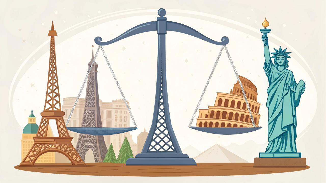 Всё лишнее, судя по всему, переместилось сюда. Колизей, равный по массе пустоте и почему-то стоящий на одной стороне с американской статуей Свободы, пирамиды Гизы и два варианта Эйфелевой башни. До сих пор не догадались, что это? Да это же торговые пошлины между ЕС и США!
