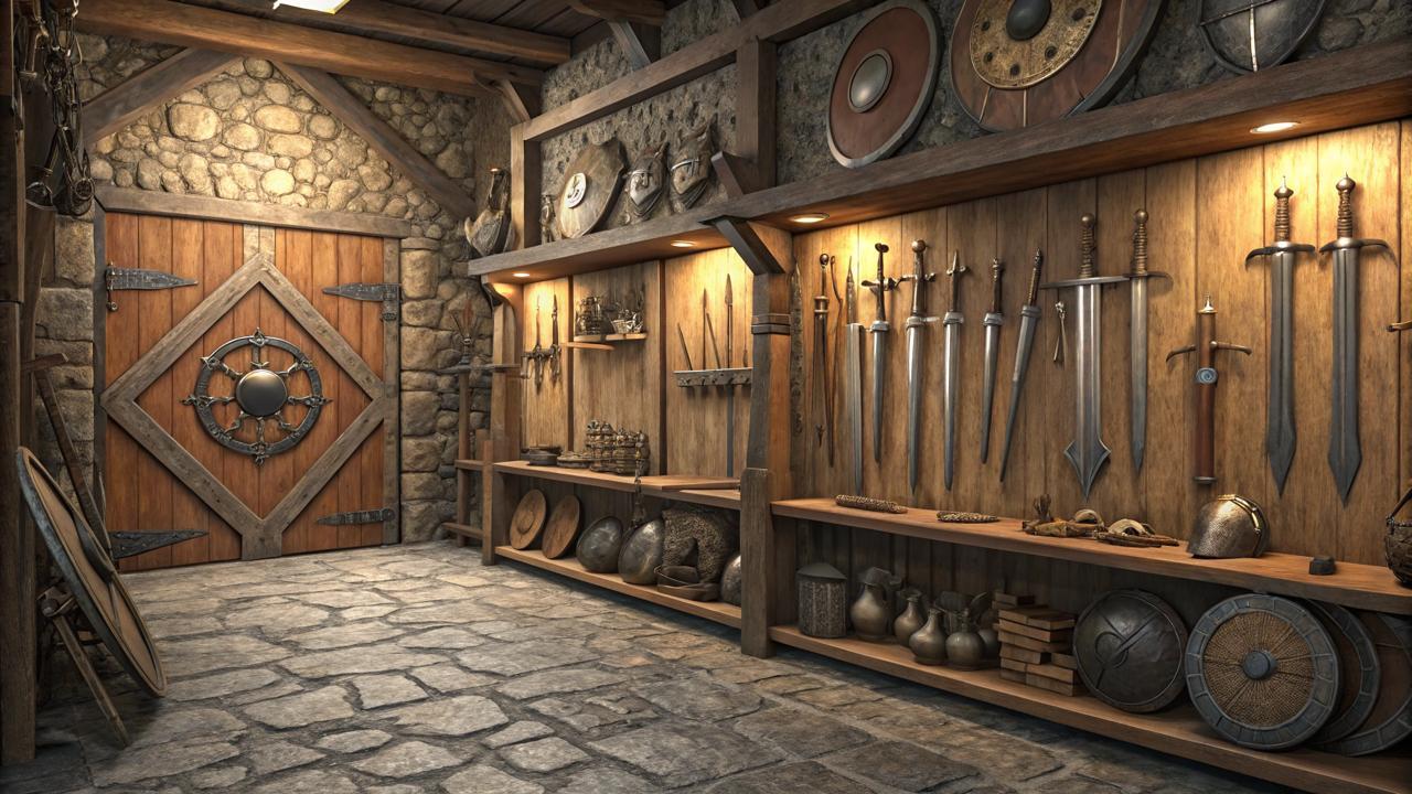 Если на следующей картинке вы видите средневековую оружейную, музей или кадр из компьютерной игры — спешим вас разочаровать. Искусственный интеллект уверен, что в таких условиях в современном мире ведётся торговля оружием. Но кто знает, возможно, именно так выглядят запасы оружия в некоторых странах, которые вечно жалуются на его нехватку?