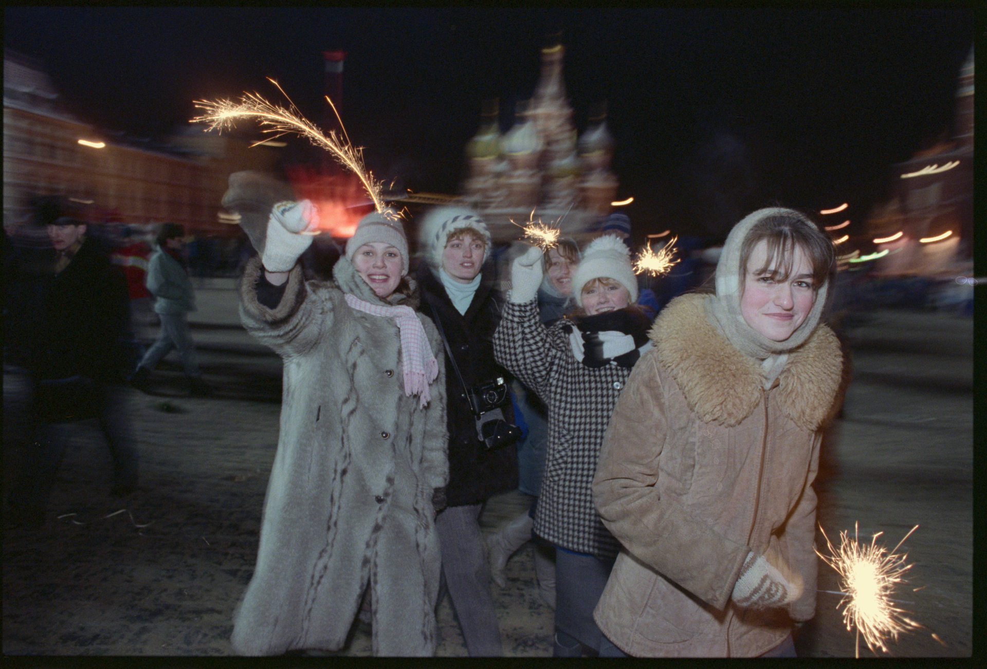 - Девушки празднуют Новый год на Красной площади в конце 1980-х годов