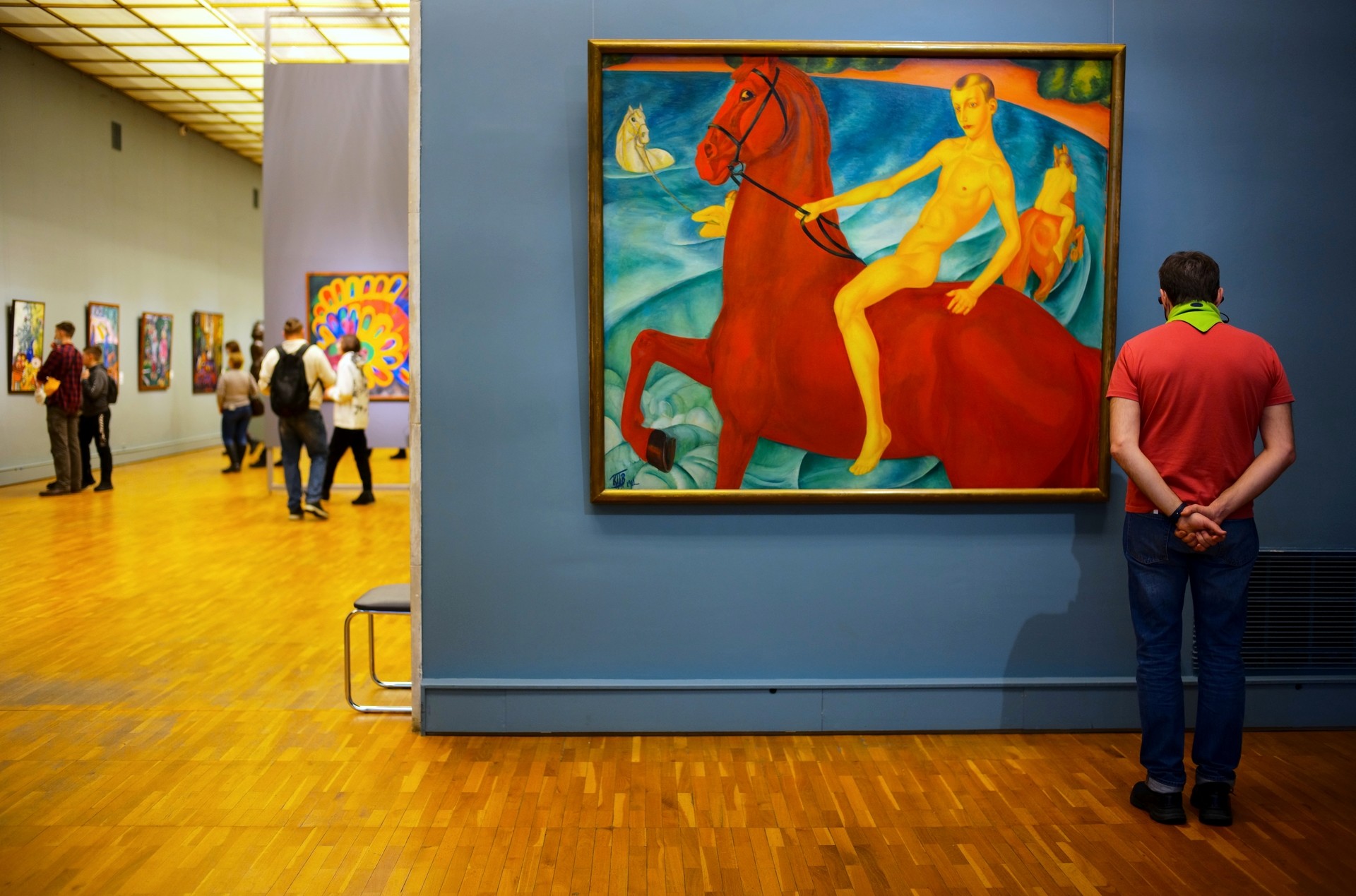 «Главная, центральная роль в этой картине отводится красному коню. Кажется даже, что он не на картине, а стоит рядом с нами. Вода и пейзаж даны в холодных тонах, из-за чего цвет коня кажется ещё ярче. Красный конь — это олицетворение самой России», — заключила экскурсовод.