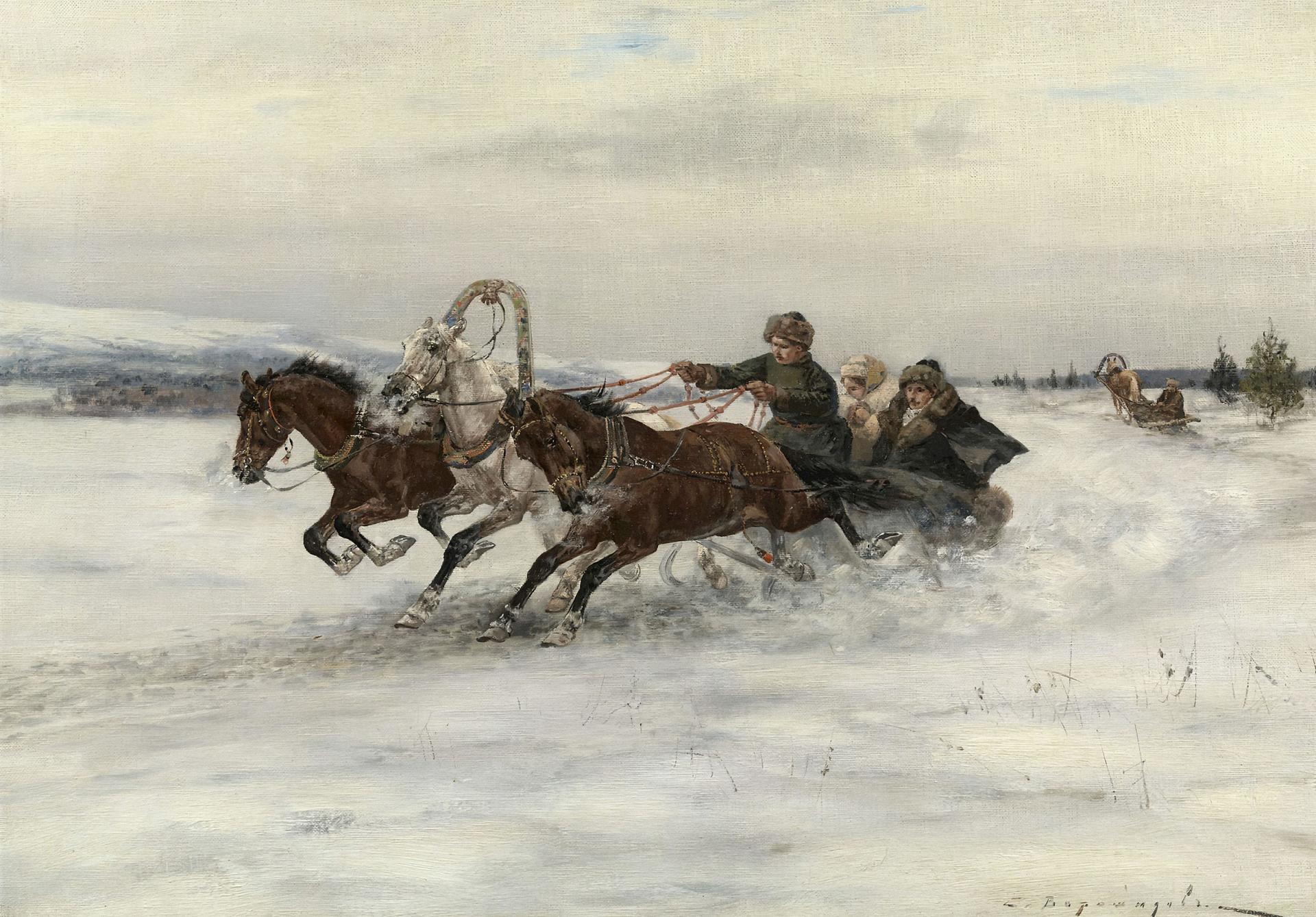 В XIX веке в картинах русских художников важное место стала занимать русская тройка.