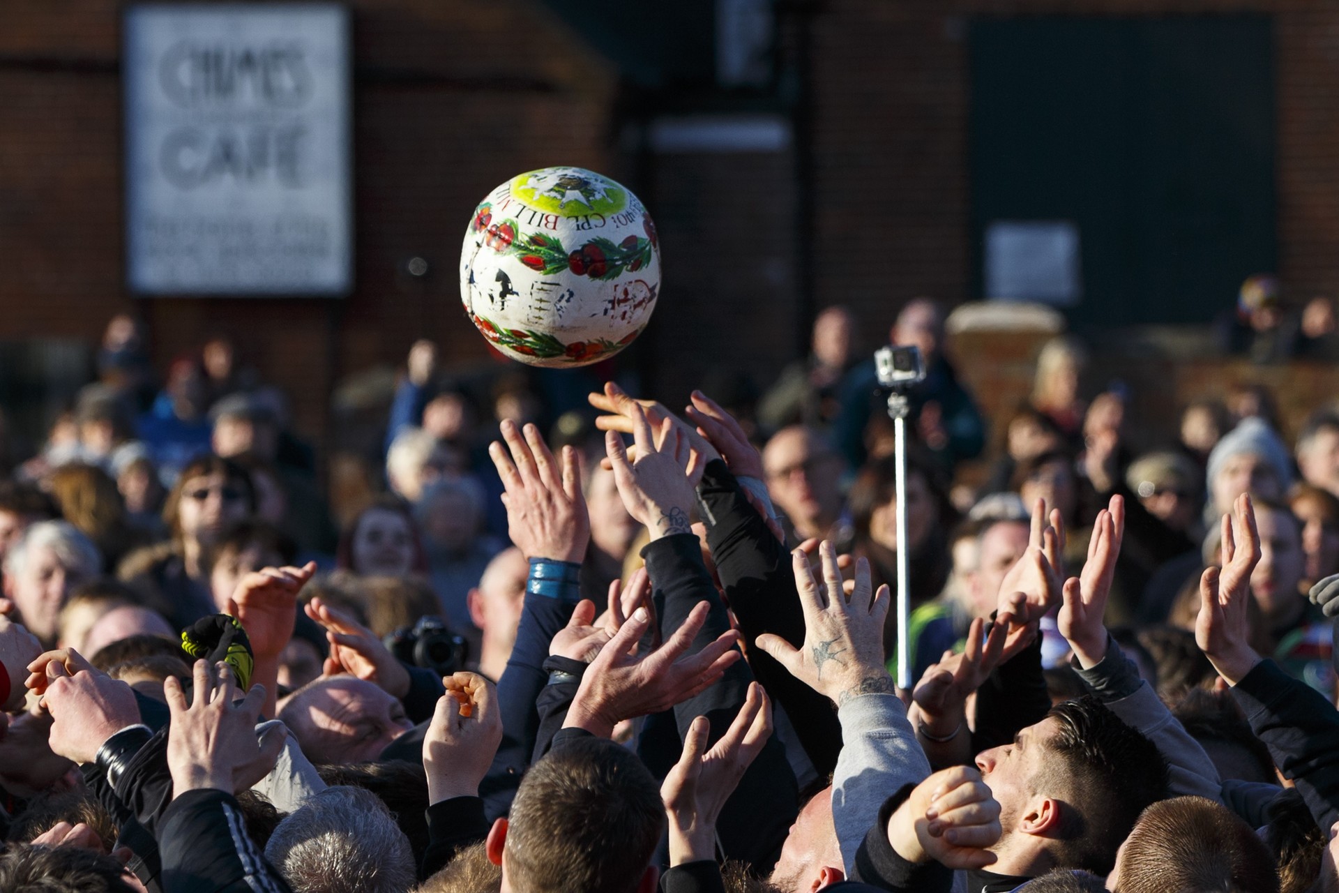 - Королевский футбол в Покаянный вторник. Ашборн, графство Дербишир, Англия