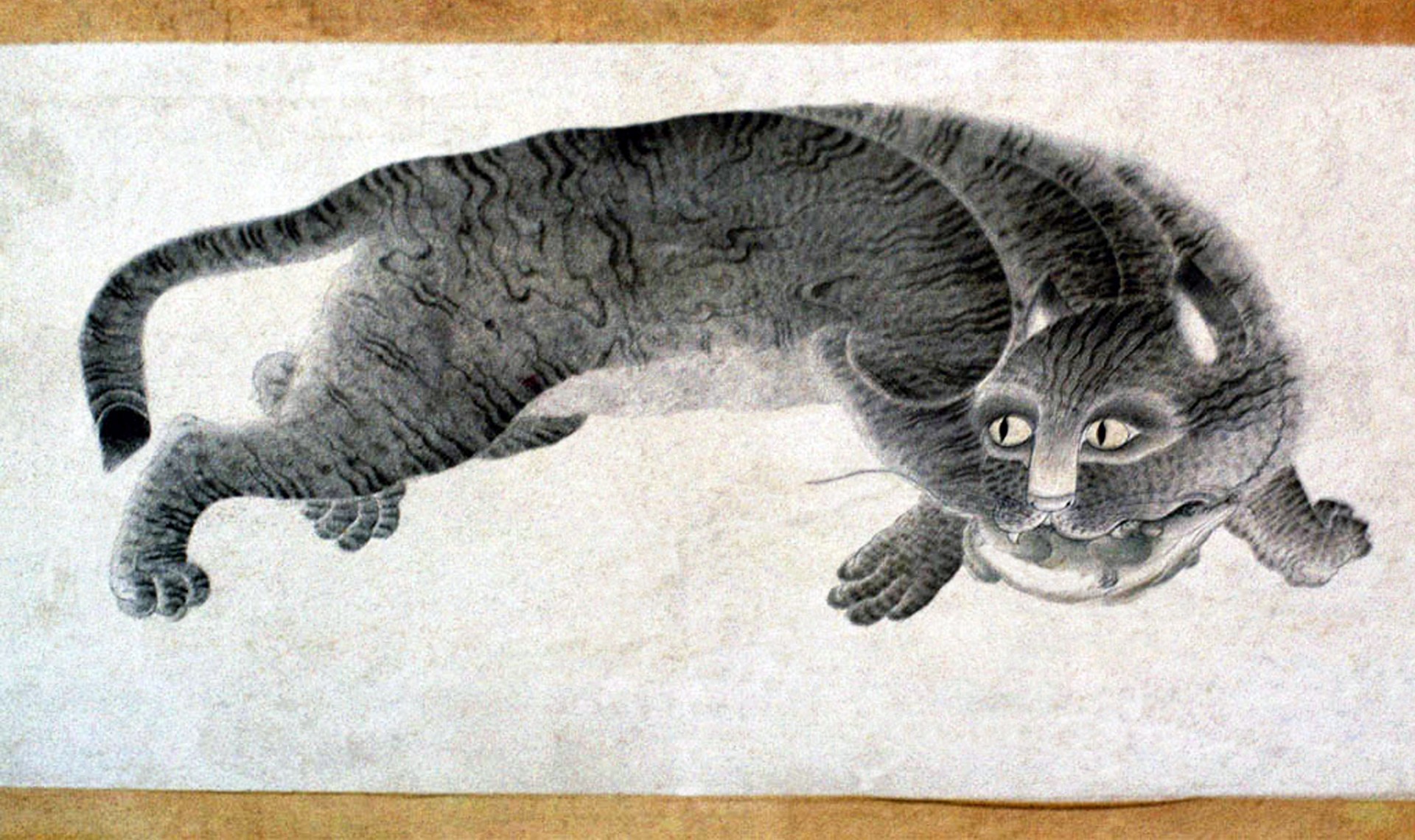 - Кошка с мышью во рту. Рисунок XV века. Школа Сиях Калам, Центральная Азия