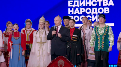 В четверг, 5 февраля, президент России Владимир Путин принял участие в церемонии открытия Года единства народов РФ. RT вёл прямую трансляцию выступления главы государства.
