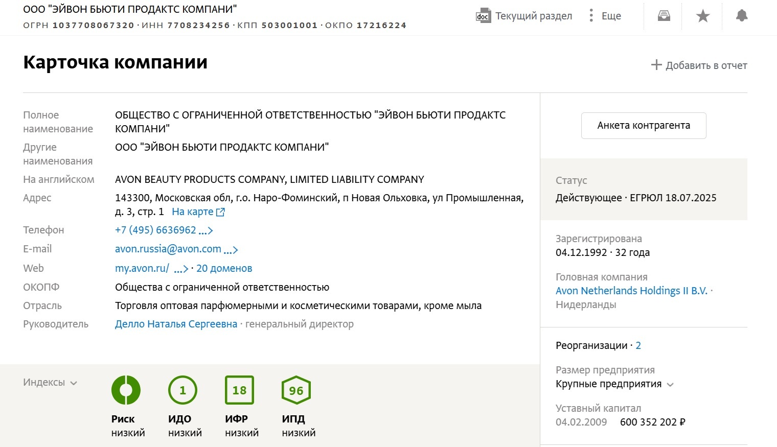 Англо-американская Avon Products Inc. была продана и стала дочерней компанией бразильской Natura Cosméticos S. A. в 2020 году, за два года до начала СВО. Тогда же бразильцы «удочерили» и российское подразделение Avon. То есть владелец у компаний один и тот же.