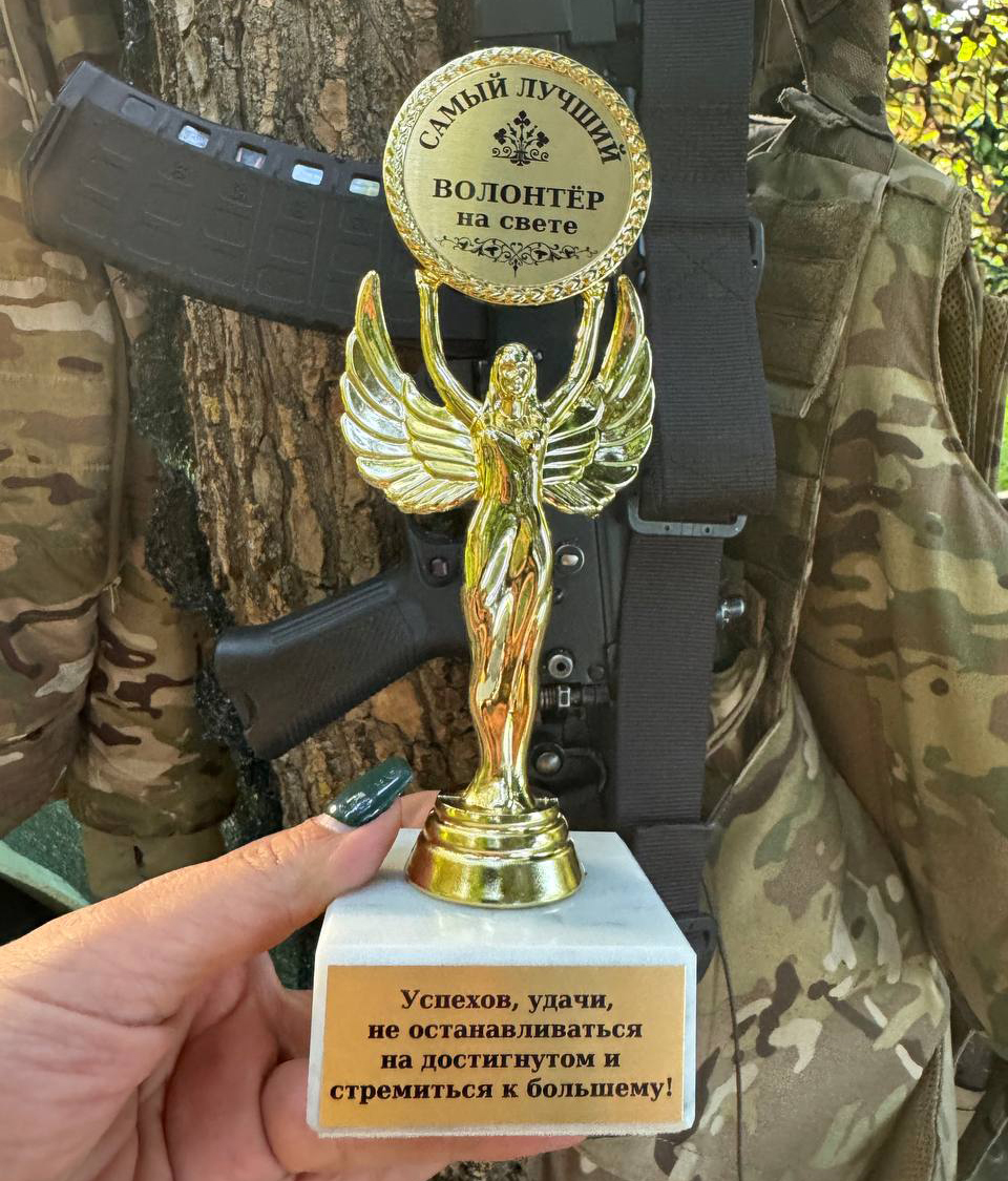 Впрочем, одна благодарность имеет для меня особенное значение. Она от конкретного бойца из подразделения, которому я довольно долго помогала. Представьте, ребята постоянно находятся на своих позициях, в сложных условиях, в постоянной опасности, практически не выезжают. И он в такой ситуации всё равно добыл статуэтку с надписью «Самый лучший волонтёр на свете»! Это, наверное, была самая приятная награда за всё время.
