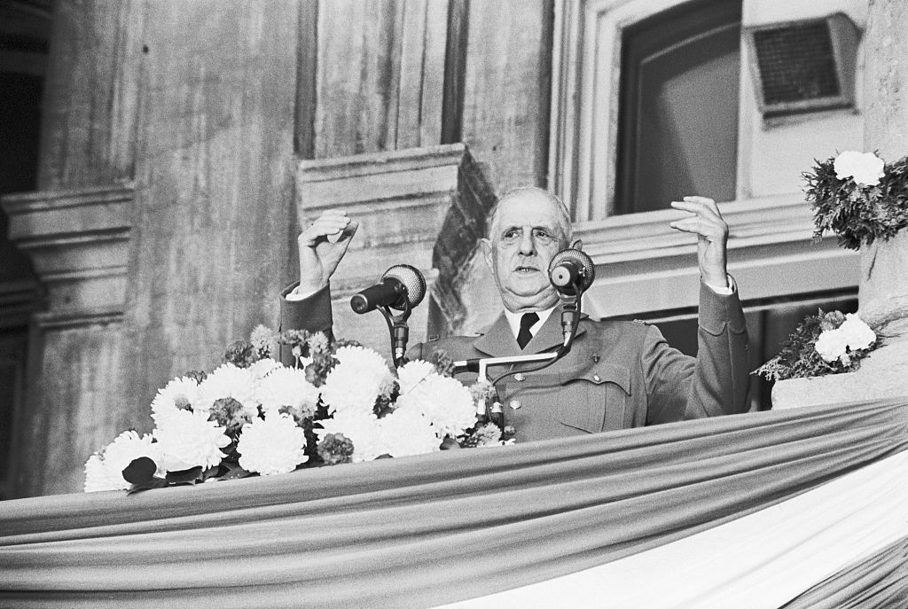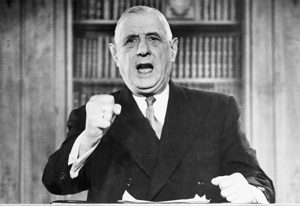 - Президент Франции Шарль де Голль выступает по телевидению перед французским народом
