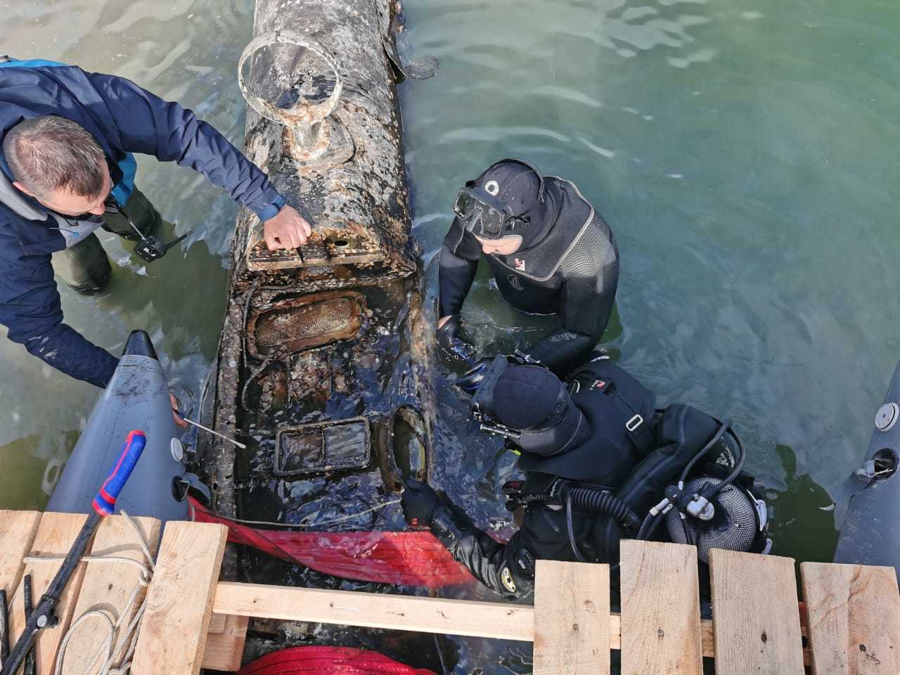 «Истребитель пролежал на дне озера почти 80 лет. Операция по его подъёму из воды была проведена минувшим летом водолазами Русской подводно-исследовательской экспедиции в сотрудничестве с военными лётчиками», — говорится в сообщении Минобороны РФ.