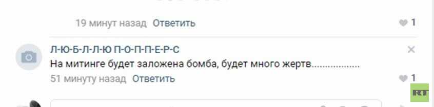 «На митинге будет заложена бомба, будет много жертв», — говорится в сообщении.