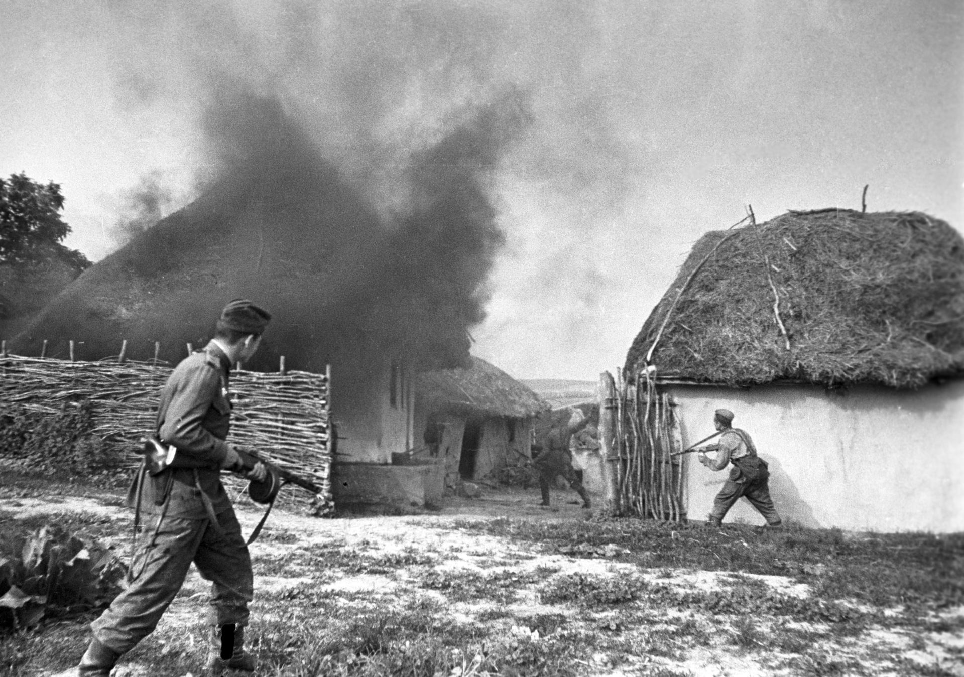 • Освобождение Украины от немецко-фашистских захватчиков. 2-й Украинский фронт. Красноармейцы ведут бой за населённый пункт