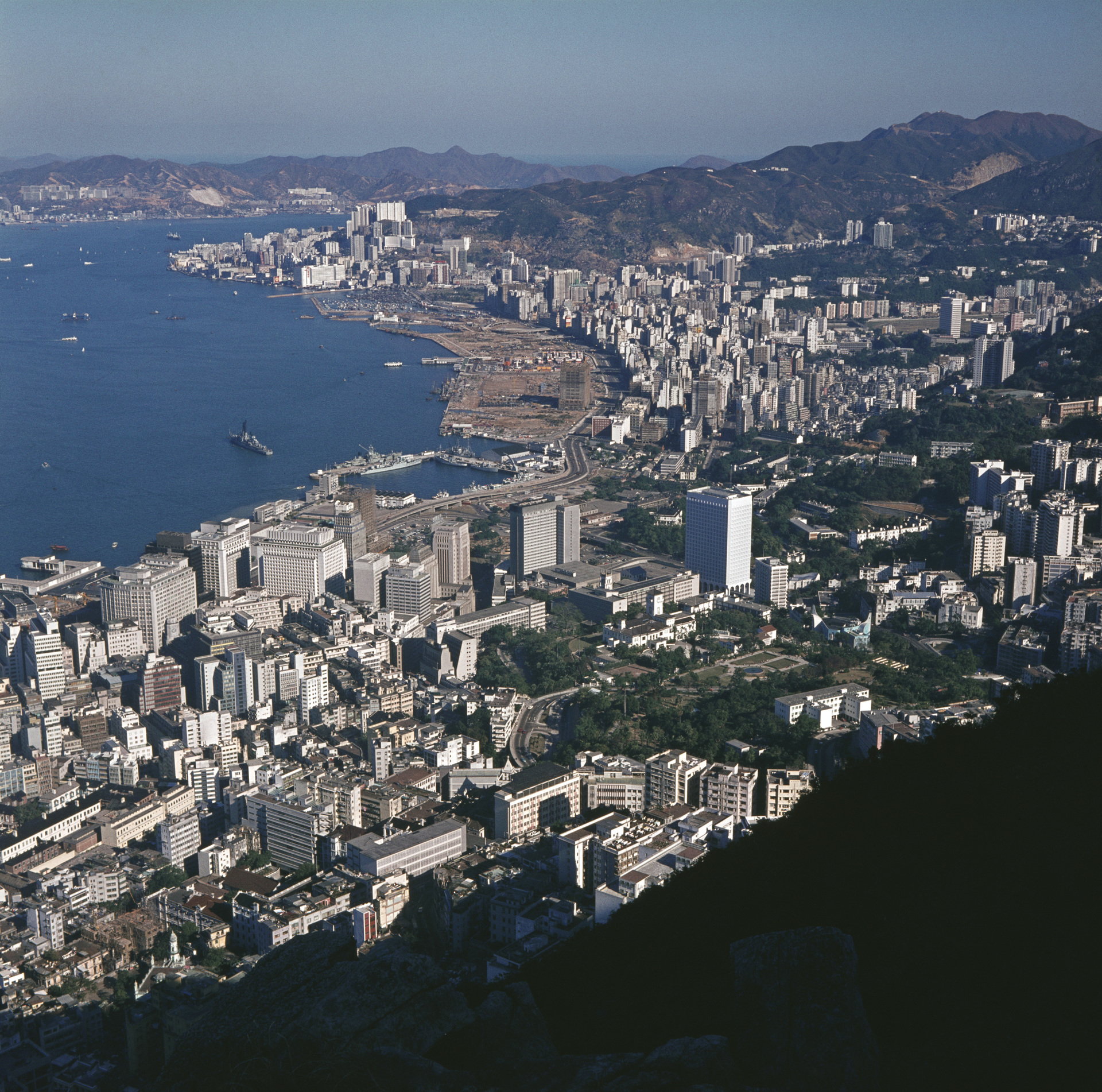 - Вид на Гонконг и гавань с высоты птичьего полёта, приблизительно 1960 год
