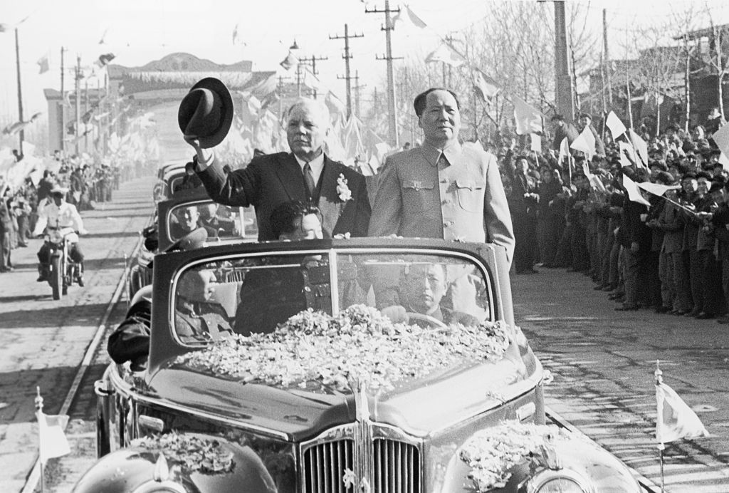 • Мао Цзэдун и Климент Ефремович Ворошилов в парадном автомобиле