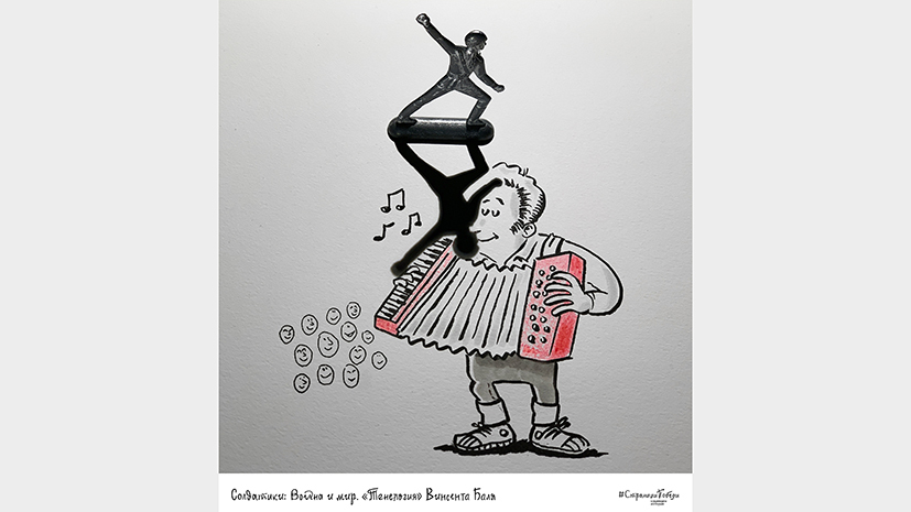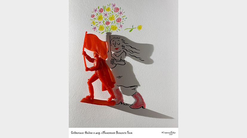 Для серии «Солдатики: Война и мир» Баль создал четыре иллюстрации с тенями от игрушек, сделанных уже в послевоенное время, и одну с тенью от гранёного стакана. Кажущиеся простыми рисунки поднимают непростую тему войны, жертв и потерь, но при этом лучатся остроумием и добротой.