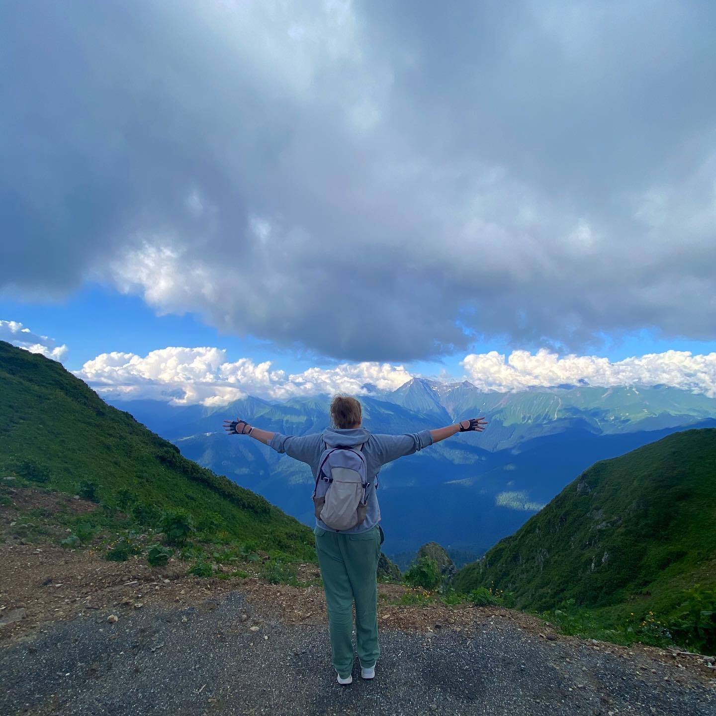 — Просто в какой-то момент я подумала: а почему бы не встретить день рождения — он у меня в июле — на Красной Поляне? Тут же списалась с девушкой-гидом, с которой познакомилась зимой на конференции TedX, и через месяц после того, как мне разрешили ходить, опираясь на обе ноги, я уже отдыхала в Красной Поляне. Ну как отдыхала... Уходила утром, приходила вечером, язык на плечо. Было очень тяжело. Честно скажу: это была одна из самых абсурдных поездок в моей жизни, потому что я вообще не представляла, что такое горы. Я знала, что будет сложно, но не думала, что до такой степени.