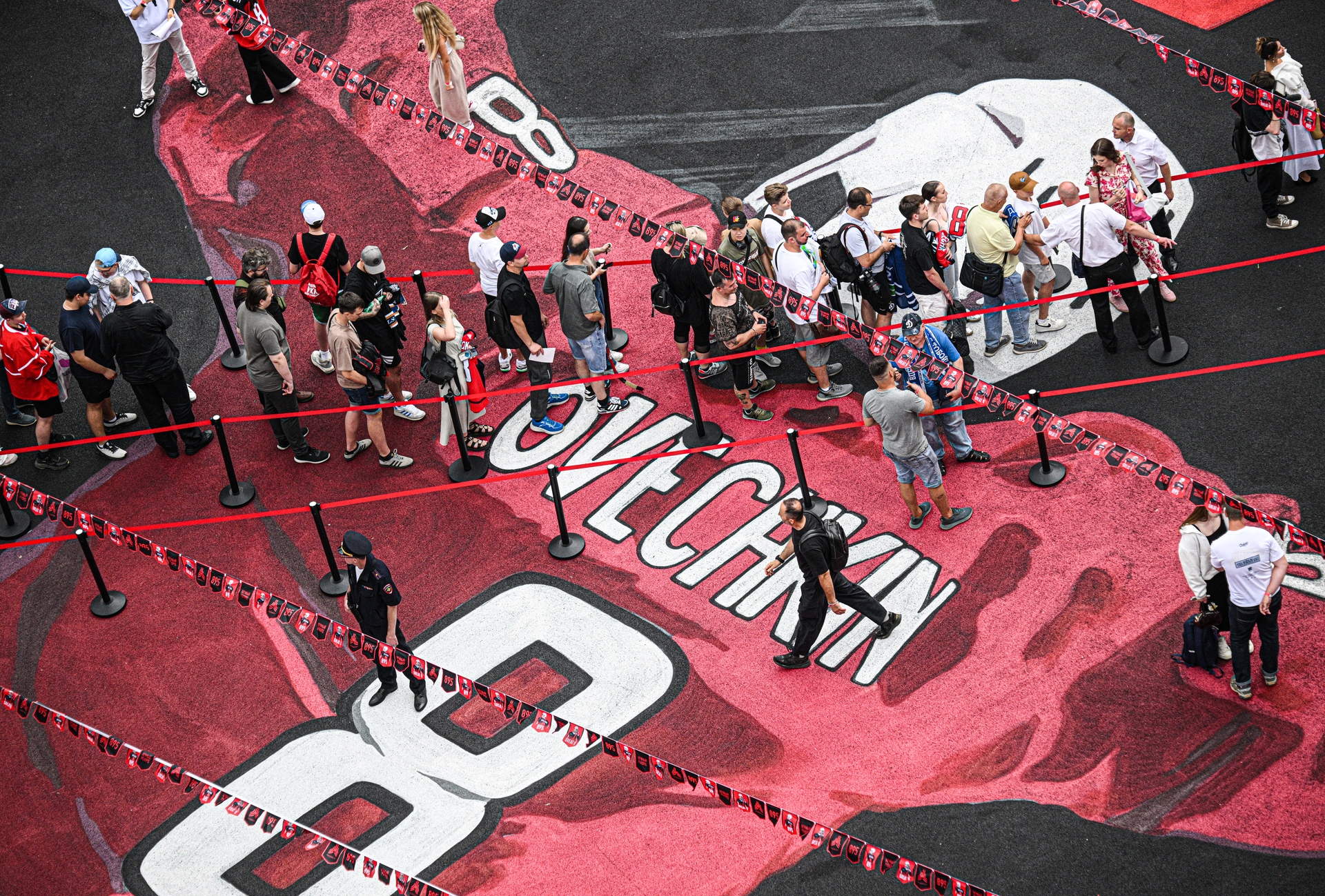 Визиту на площадку предшествовал проход по Никольской, которая на время фактически превратилась в улицу Овечкина. Вместо привычных гирлянд её украсили джерси с номером 8 и цифрой 895, надписями Great 8 и Ovechkin, а также с фотографиями хоккеиста.
