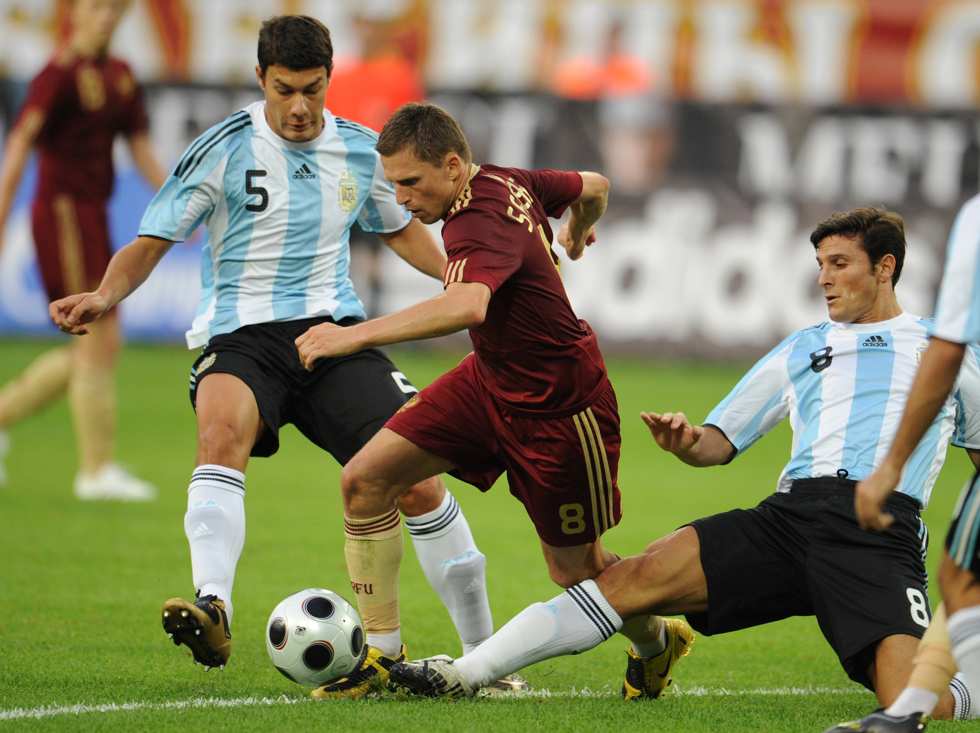 — Чем запомнился Лионель? Тем, что получил травму и остался в запасе. Но звёзд при этом у аргентинцев хватало: Хавьер Санетти, Серхио Агуэро, Хавьер Маскерано. А на тренерской скамейке находился сам Диего Марадона. Мне особенно запомнился опорник «Барселоны», поскольку часто сталкивался с ним в середине поля. Мастер невероятный! И крайне жёсткий, неуступчивый. С одной стороны, кажется, ничего невообразимого не показывал. С другой — принимал удивительно своевременные решения. Когда сталкиваешься с такими исполнителями, концентрация должна быть на максимуме. Но и мы за год до того взяли медали Евро и были очень сильны.