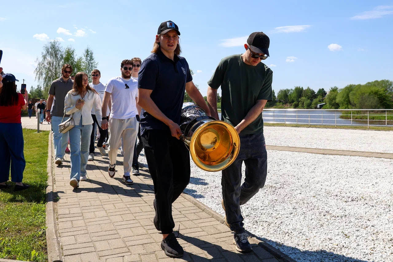 - Иванов с партнёром несут Кубок Гагарина к мемориалу погибшим хоккеистам «Локомотива»