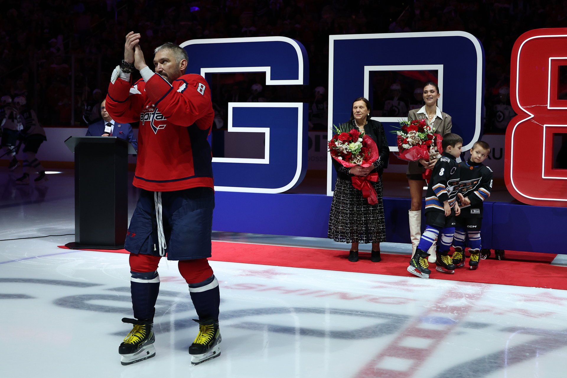 За очередным достижением хоккеиста с трибун «Кэпитал Уан Арены» наблюдали его супруга и дети, которых он тепло обнял сразу по окончании противостояния.
