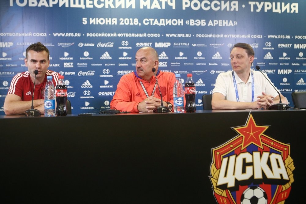Сборная России по футболу продолжает подготовку к домашнему чемпионату мира. После объявления финальной заявки на турнир в национальной команде остались 23 игрока. В понедельник, 4 июня, они провели заключительную тренировку перед товарищеским матчем с Турцией, который состоится в Москве.