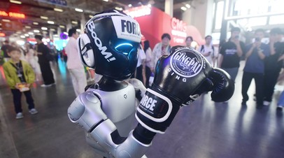 Китайский производитель робототехники показал, как модель человекоподобного робота G1 обороняется в «бою» с человеком, быстро поднимается после падений и кувыркается, пытаясь избегать ударов.